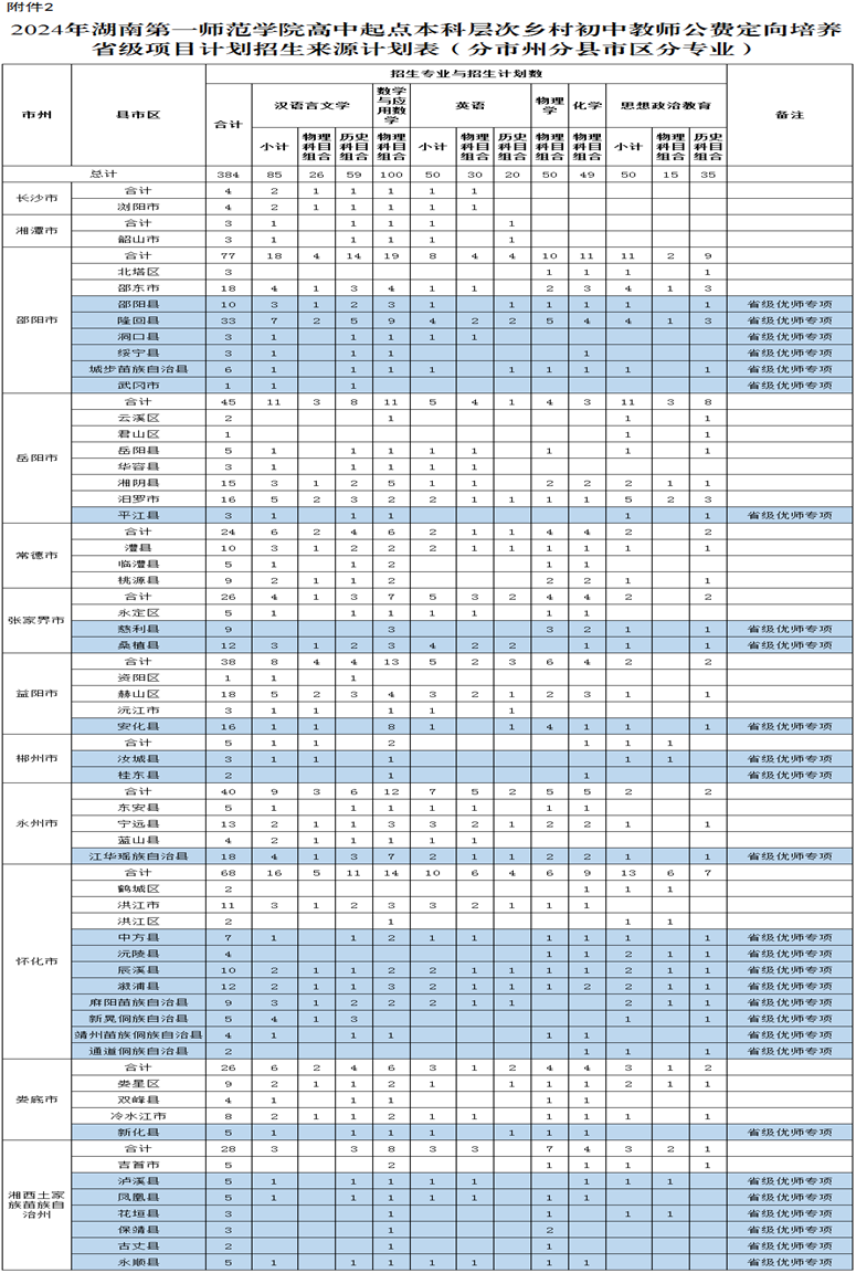 2.2024年2138cc太阳集团官网入口高中起点本科层次乡村初中教师公费定向培养省级项目计划招生来源计划表(分市州分县市区分专业)