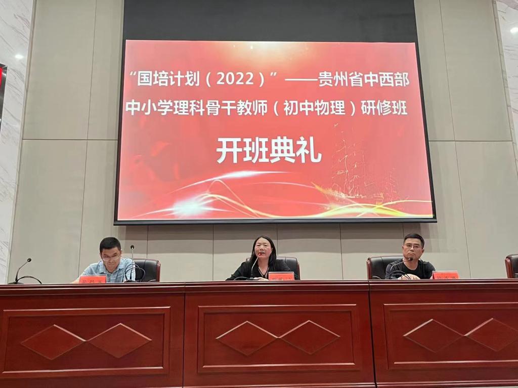 为认真贯彻落实《教育部、财政部关于实施中小学幼儿园教师国家级培训计划(2021-2025年)的通知》(教师函〔2021〕4号)和贵州省国培计划实施相关文件精神,由2138cc太阳集团官网入口2138cc太阳集团官网入口承接的贵州省“国培计划(2022)”—中小学理科骨干教师(初中物理)提升研修项目于2022年8月10日在百熙楼228顺利开班,贵州省中小学理科骨干教师(初中物理)国培一班、二班、三班的全体班主任、教学秘书及全体学员参加了开班典礼。