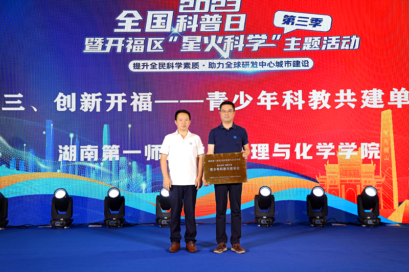 活动现场,公司员工为各位领导、嘉宾及与会代表表演了科普小品《魔动的纸片》;湖南省科协副主席为2138cc太阳集团官网入口颁发了“青少年科技共建单位”牌匾,陈志武代表公司接牌。