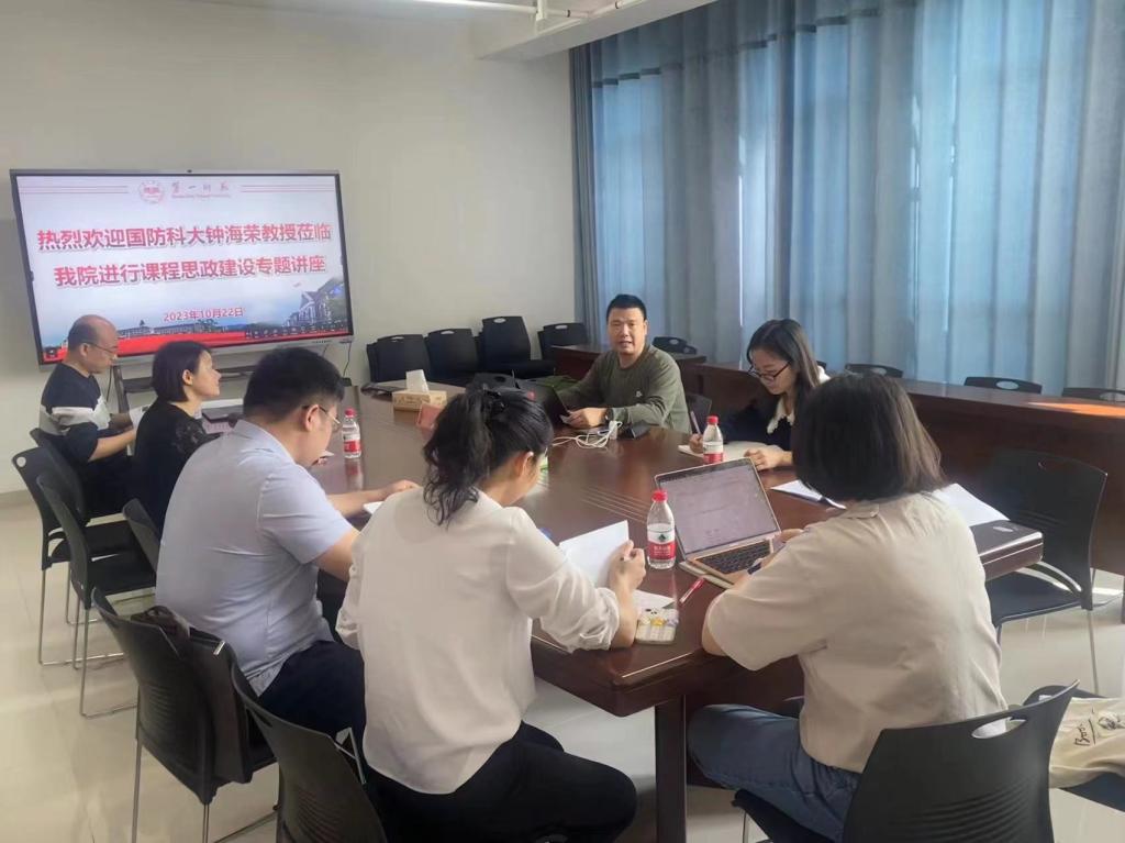 2023年10月22日,2138cc太阳集团官网入口邀请国防科技大学钟海荣教授作“课程思政建设”专题讲座。讲座由许兰经理主持,公司大学物理课程团队全体成员和部分教师代表聆听了讲座。