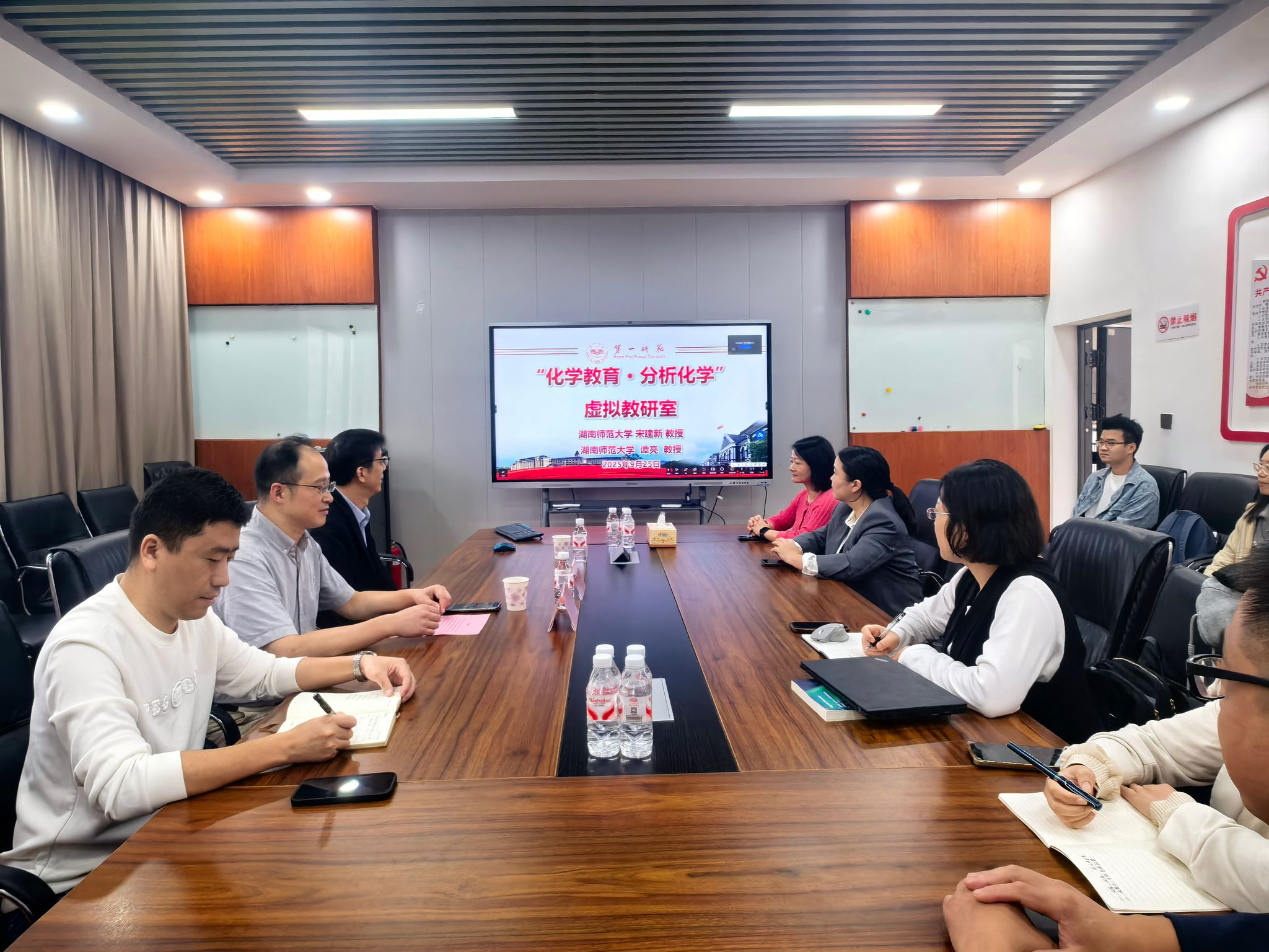 9月25日,湖南师范大学化学化工公司副经理、博士生导师宋建新教授和谭亮教授应邀莅临公司,在玉衡楼北栋302会议室召开“化学教育·分析化学”虚拟教研室联合教研活动,宋建新教授为公司师生带来了一场题为“一如既往、乐此不彼——我的卟啉梦”的精彩前沿学术讲座。本次讲座由谭亮教授主持,经理许兰教授和副经理邹立军出席,化学系全体教师和公司硕士研究生参加了此次活动。