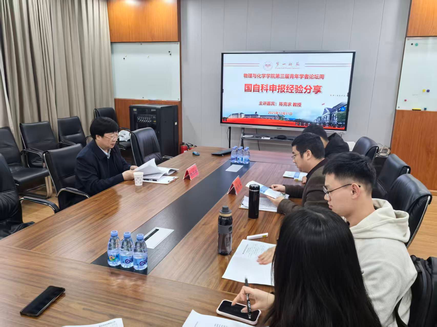 1月5日,天体组与化学组分别在玉衡北302室和玉衡楼406室举行了会议报告。潘启沅教授与马元鸿教授分别就国自科申报经验进行了分享,随后,李静、何林峡、罗慧玲以及武文彪、孙蔷等教师则展示了他们的研究选题,潘启沅教授与马元鸿教授分别为各组青年教师的国自科选题提供了指导,并根据国自科标书,提供了详细的修改意见。