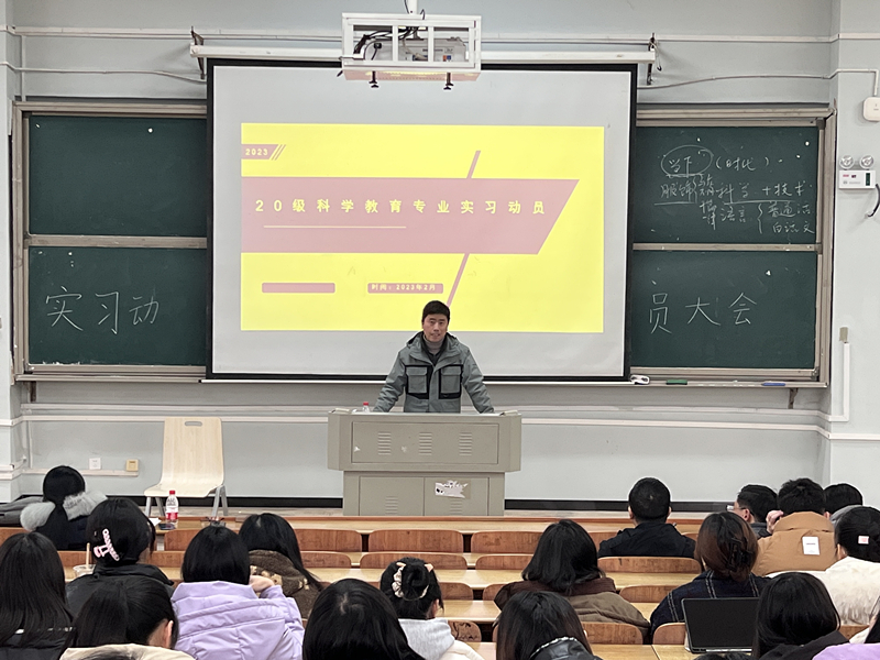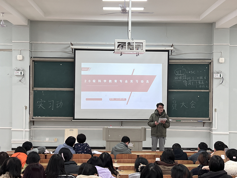 为推进2023年教育实习工作的顺利开展,2月18日中午,2138cc太阳集团官网入口院教育实习动员大会在怀中南206举行,经理助理邹立军、科学教育系主任黄文、副主任江华军、实习指导老师和2020级科学教育专业全体员工参加,会议由江华军主持。