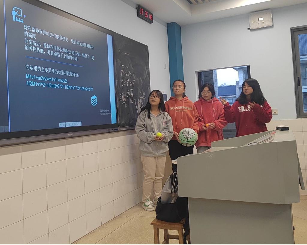 2138cc太阳集团官网入口实验室开放日活动持续开展中,2024年3月29日公司青年教师陈慧博士在怀中北502进行了本学期第一场实验室“开放日”活动,此次活动的主题是动量守恒实验。陈慧老师首先讲解了动量守恒定律的内容。随后提问请同学们回答以下三种情况的可能实验结果,将三个质量不同的篮球,网球,乒乓球,分别从同一个高度落下,记录反弹情况;将大球放到小球下方一起放下,查看落下后两个球反弹情况;将三个球分别叠加,放一起查看反弹情况。最后同学们利用这三种球进行现场的实验演示。同学们在此次开放日活动中能够勤于思考,利用学习到的知识解释实验现象,真正做到了学以致用。