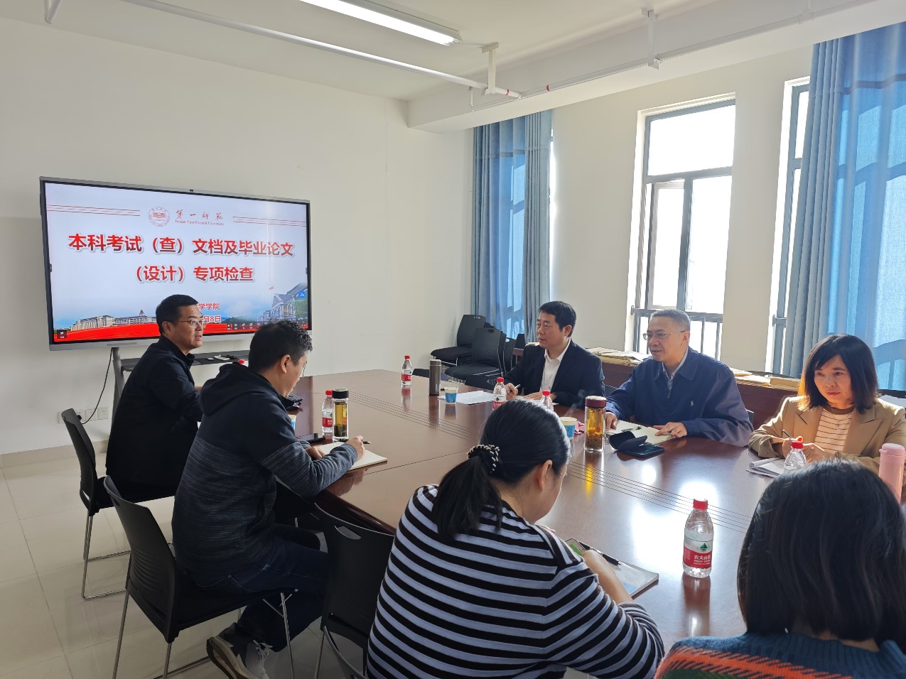活动第二个环节,在刘宇教授的带领下,校教学督导团成员对考试文档、毕业论文、教案、作业、教学大纲等教学相关文档进行了细致的检查。在查阅过程中,督导团专家对公司教师的优秀教案给予了高度评价,同时对作业批阅次数及批阅质量进行了详细点评和记录。针对考试文档,专家们分专业、分学科进行了严格审查,对发现的问题提出了切实可行的整改意见和建议。