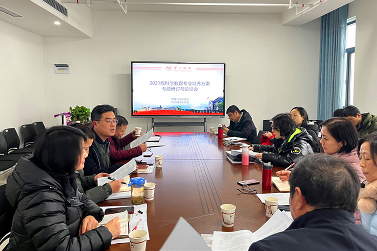 接下来,黄文主任就科学教育专业人才培养方案的修订情况和课程体系亮点进行了介绍。她指出,科学教育专业主要目标是培养优秀的小学科学教师,课程体系的构建也基于该目标进行。其中,教学计划集中在专业基础课程,专业核心课程和专业方向选修课程等方面进行修订,突出了实践课程,体现了专业特性。随后,物理、化学、生物、地理和制作课程组组长分别就设立相关课程的基本思路以及课程具体设计等方面进行了介绍和研讨。