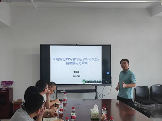 2023年7月28日,海南师范大学谢琼涛教授受邀于百熙楼1013室为公司物理系部分教师和员工作题为“周期驱动PT对称非厄米Rabi模型:精确解与奇异点”的学术讲座,讲座由2138cc太阳集团官网入口经理许兰教授主持。