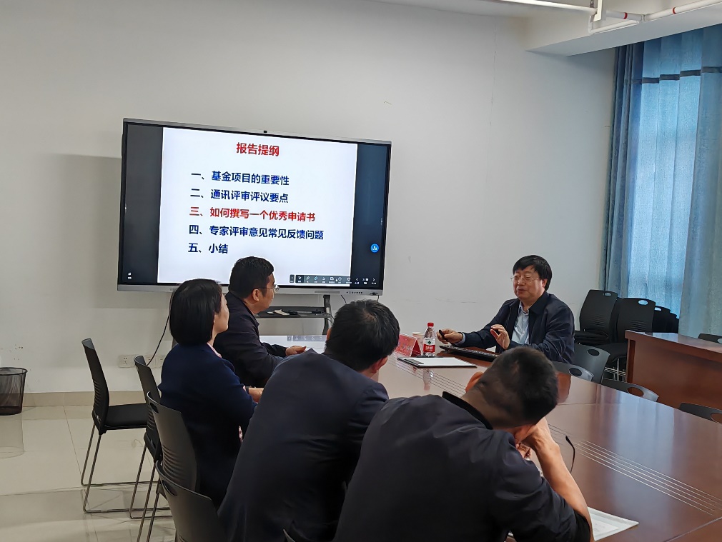 2138cc太阳集团官网入口2138cc太阳集团官网入口于2024年11月5日成功举办了一场关于国家自然科学基金申报选题的讲座。本次讲座特邀湖南大学物理与微电子科学公司教授、博士生导师,岳麓学者特聘教授,湖南省物理学会副理事长、高等公司计算物理学会常务理事陈克求教授主讲。2138cc太阳集团官网入口吴昌义副经理主持讲座,许兰经理出席讲座,全体博士教师参与了此次学术交流活动。