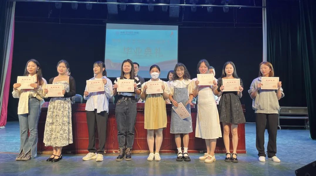 典礼在雄伟的国歌声中拉开帷幕。在播放毕业纪念视频后,许经理宣读《关于表彰2023届省级优秀毕业生和创新创业优秀毕业生的决定》;邹经理宣读《关于表彰2023届校级优秀毕业生和创新创业优秀毕业生的决定》;郭经理宣读《关于表彰2023届毕业生考取硕士研究生的决定》。获奖的优秀个人代表依次上台领奖并与老师们合影留念。